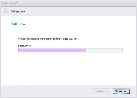 Nach erfolgreichem Wiederherstellen und einem Klick auf Fertigstellen startet Columba XT 8 mit dem wiederhergestellten Datenbestand neu.