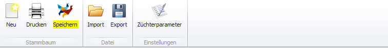 Wählen Sie anschließend Speichern aus der Funktionsleiste um die Tauben und Stammbäume in den Taubenstamm des Columba XT zu übernehmen.