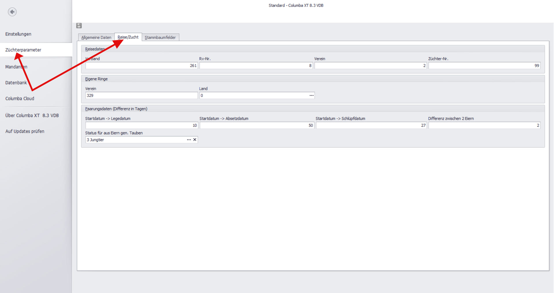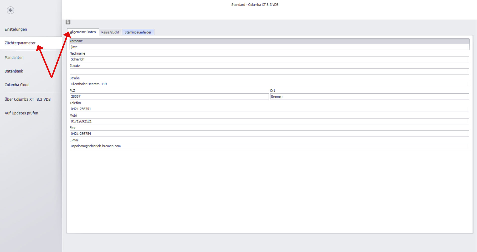 Im Züchterparameter im Tab Stammbaumfelder können Vorgaben für den Stammbaumausdruck festgelegt werden: