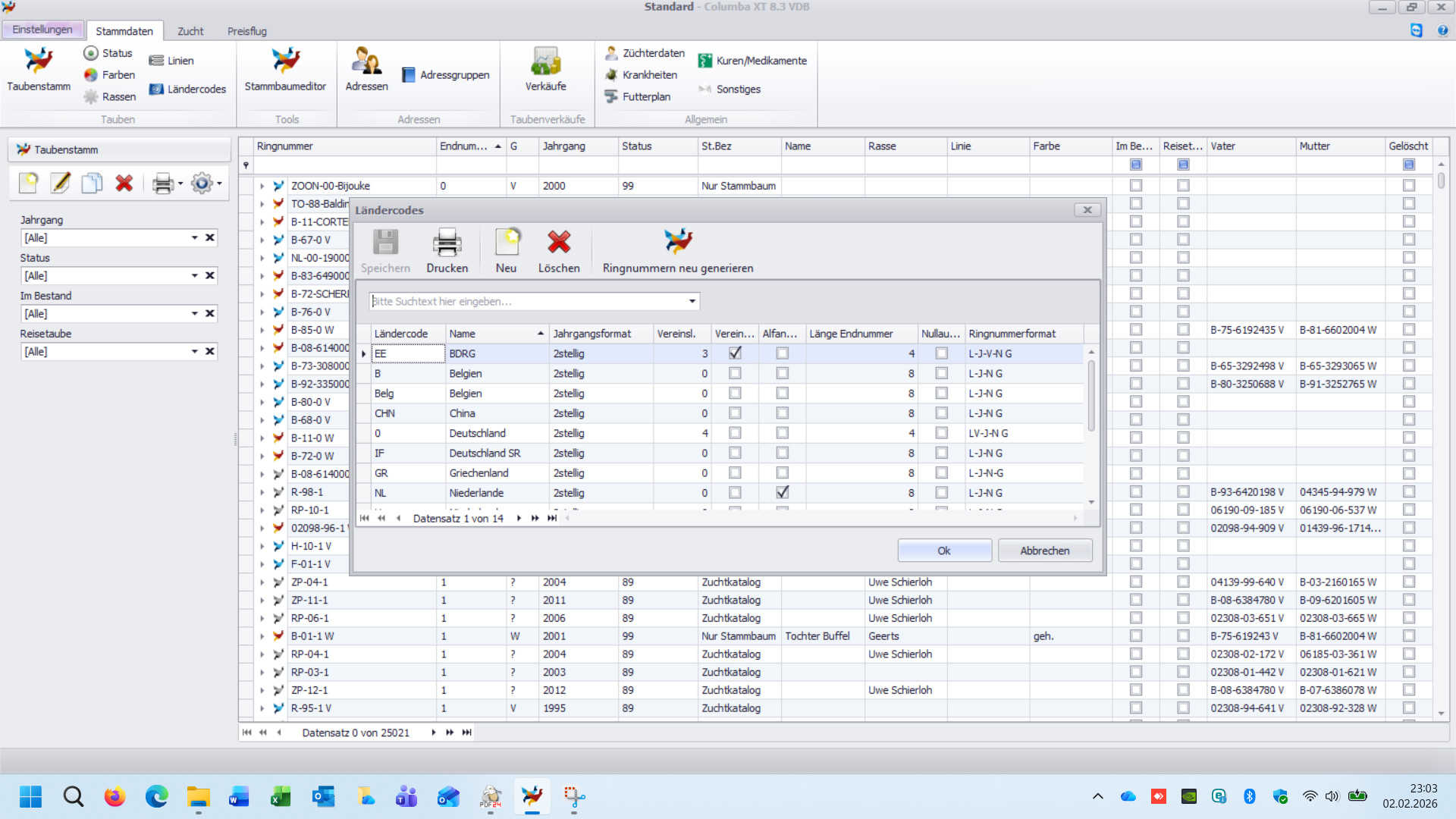 Unter dem Menüpunkt Ländercodes definieren Sie wie Ihre Ringnummern gebildet werden sollen.